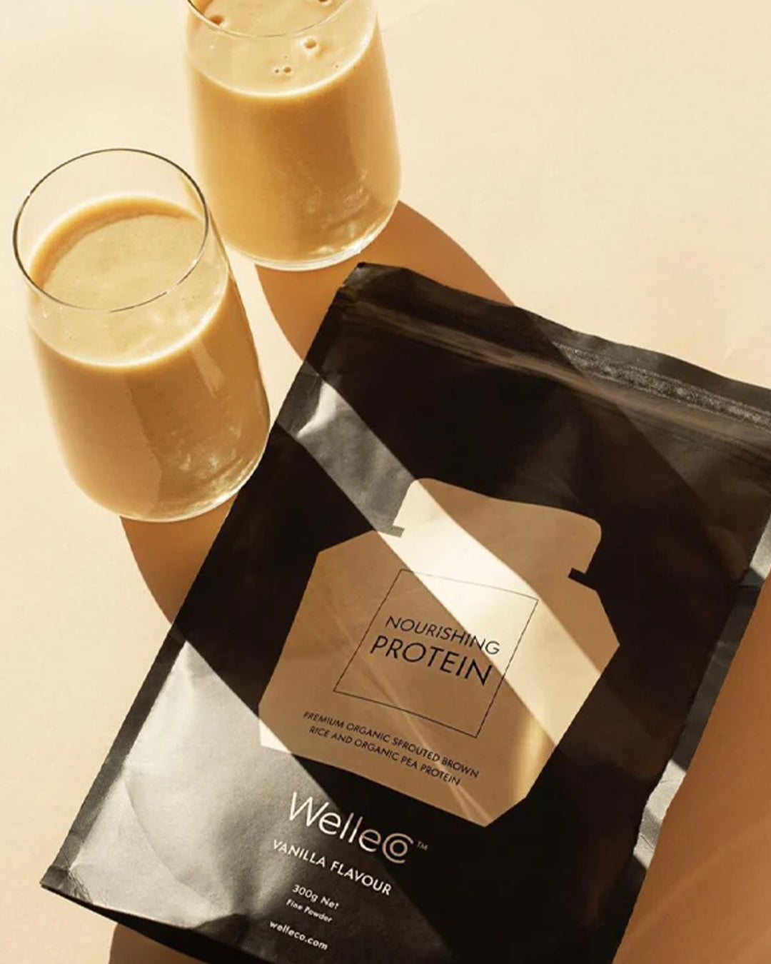 Creado para ayudar a apoyar la recuperación muscular, aliviar la hinchazón y mejorar los niveles de energía, el polvo vegano Nourishing Protein de WelleCo está formulado con ingredientes libres de gluten y no transgénicos, e infusionado con prebióticos y probióticos, extractos herbales, vitaminas y minerales para una nutrición completa. Esta deliciosa proteína vegana proporciona los 9 aminoácidos esenciales necesarios para la recuperación post-entrenamiento y también ayuda a equilibrar los niveles de azúcar en la sangre, convirtiéndola en el perfecto impulso para la tarde.